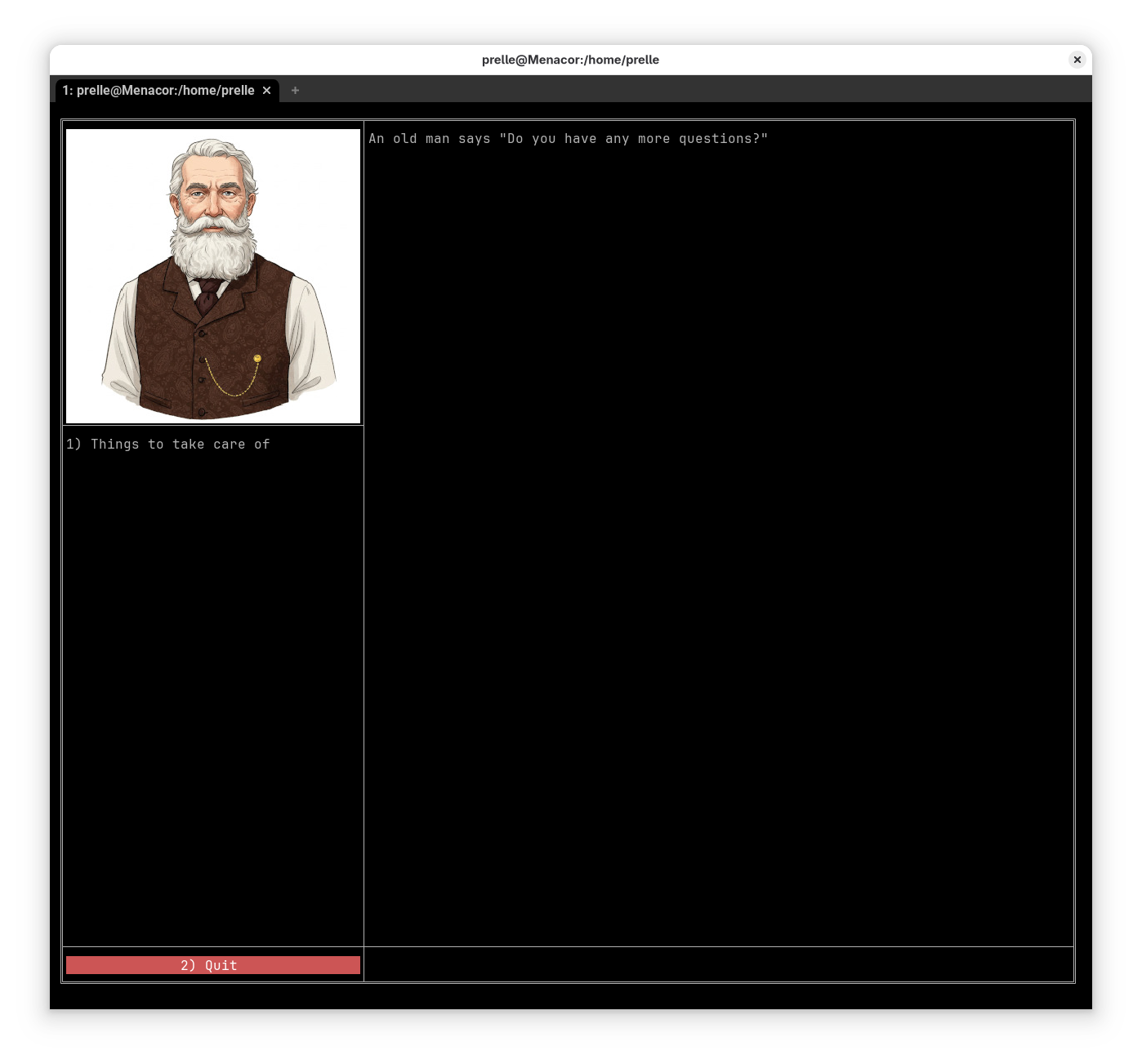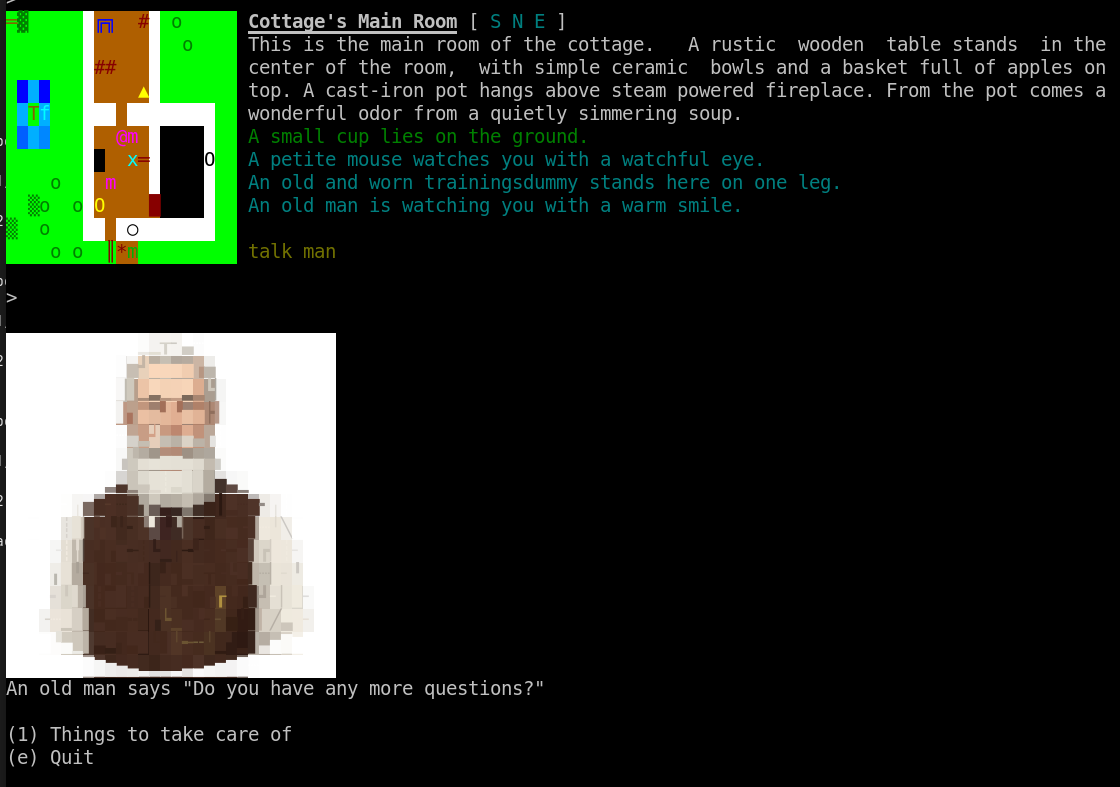 Of course, clients that don't support VT100 cursor control will get a simpler version. Same for NPC images: For non-graphical clients like Mudlet, we use chafa to convert images to colored UTF8 characters.